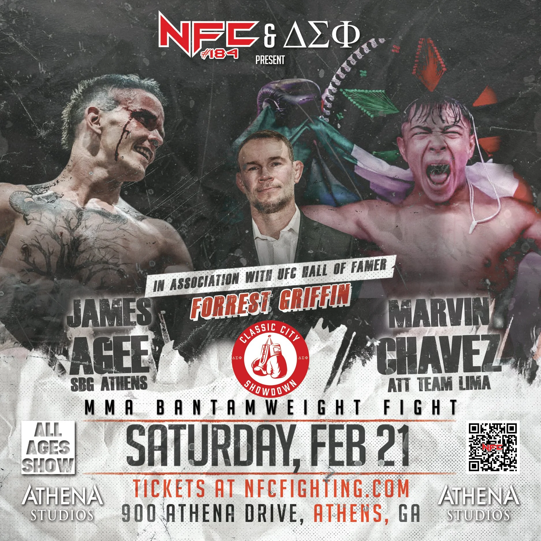Step into history as NFC #184 / The Classic City Showdown combine forces for the first time ever in Athens, GA, with none other than UFC legend Forrest Griffin leading the charge. A former Athens resident and UGA student, Griffin will be in town all weekend, bringing his championship spirit to the NFC cage. Don't miss your chance to experience the fights with a true MMA icon!